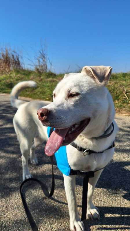 Cette magnifique croisée Husky / Bully d’un an a été repérée par l’association Les Petites Pattes d'Agnès Feraud. Elle a passé deux mois de test auprès de notre éducatrice et s’est qualifiée pour poursuivre la formation.